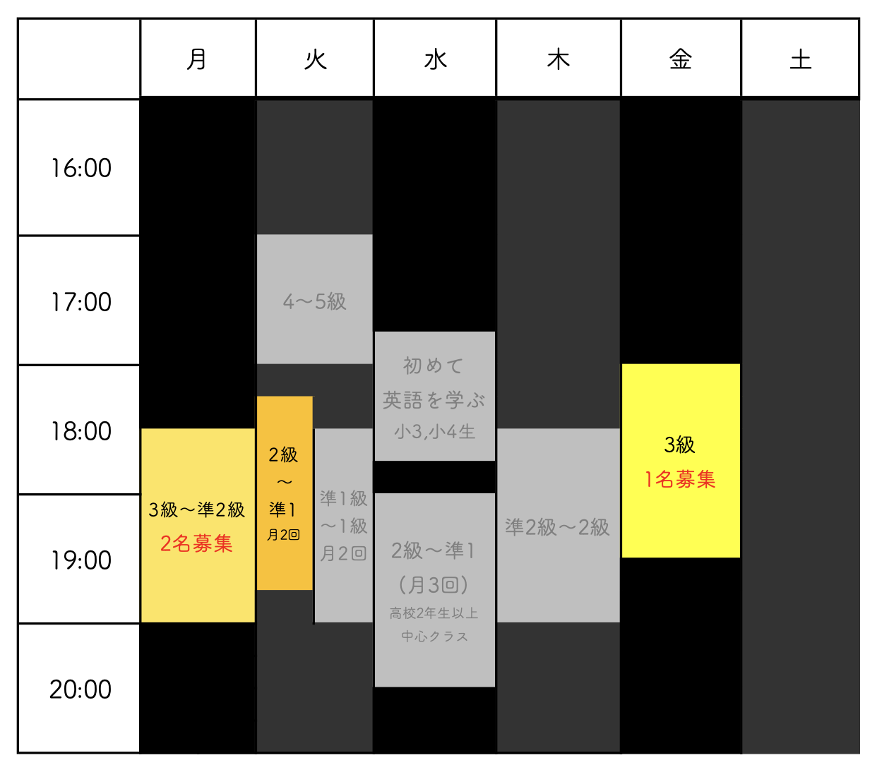 • 開講クラス・費用・レッスン時間