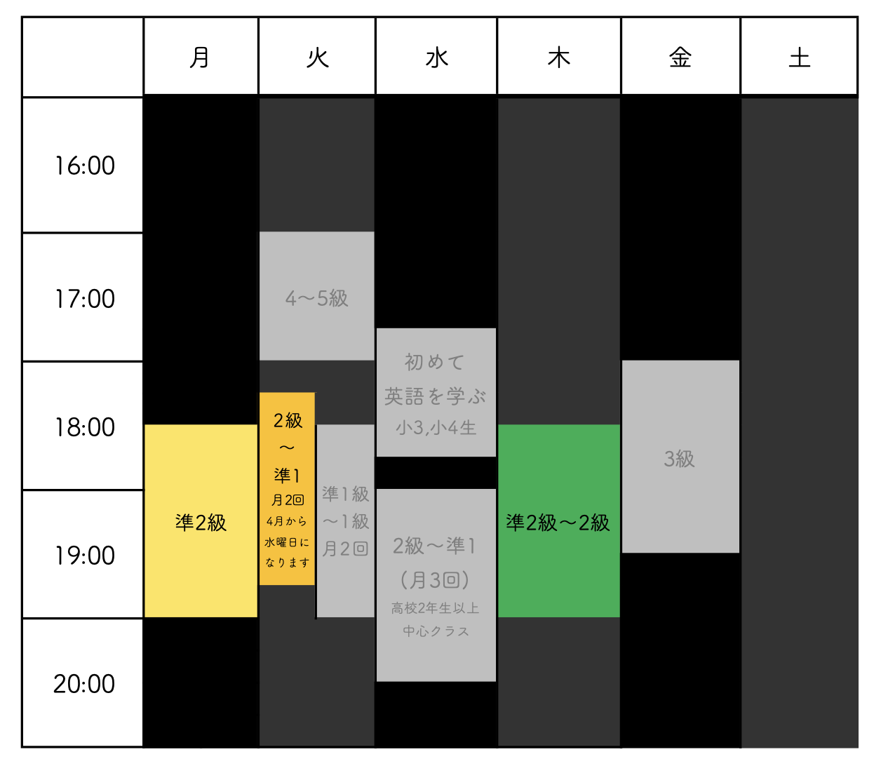 • 開講クラス・費用・レッスン時間